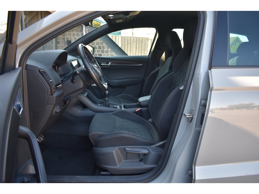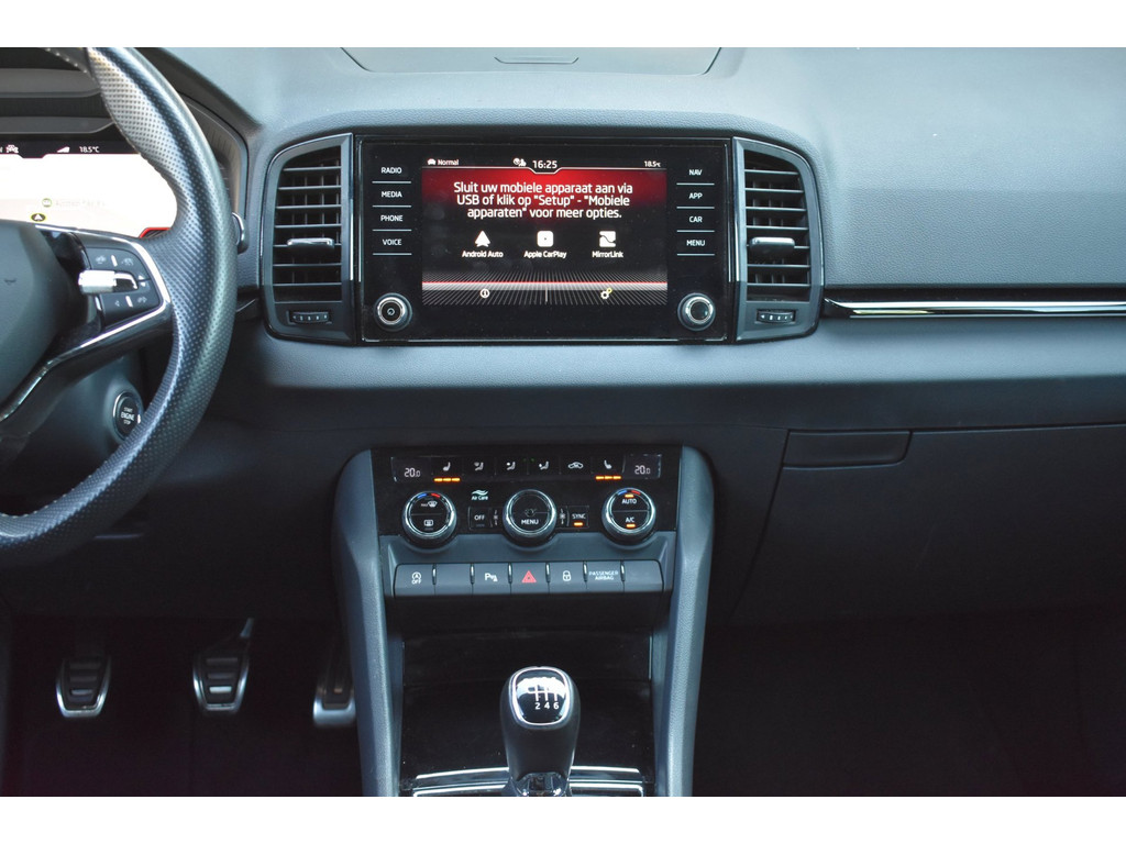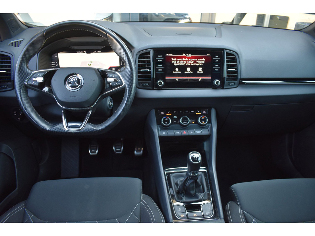 Deze Karoq Sportline is rijk uitgerust met populaire opties zoals een achteruitrijcamera, virtual cockpit (digitaal dashboard), stoelverwarming, Apple CarPlay en Android Auto. Ideaal voor comfortabel en modern rijden, zowel zakelijk als privé.