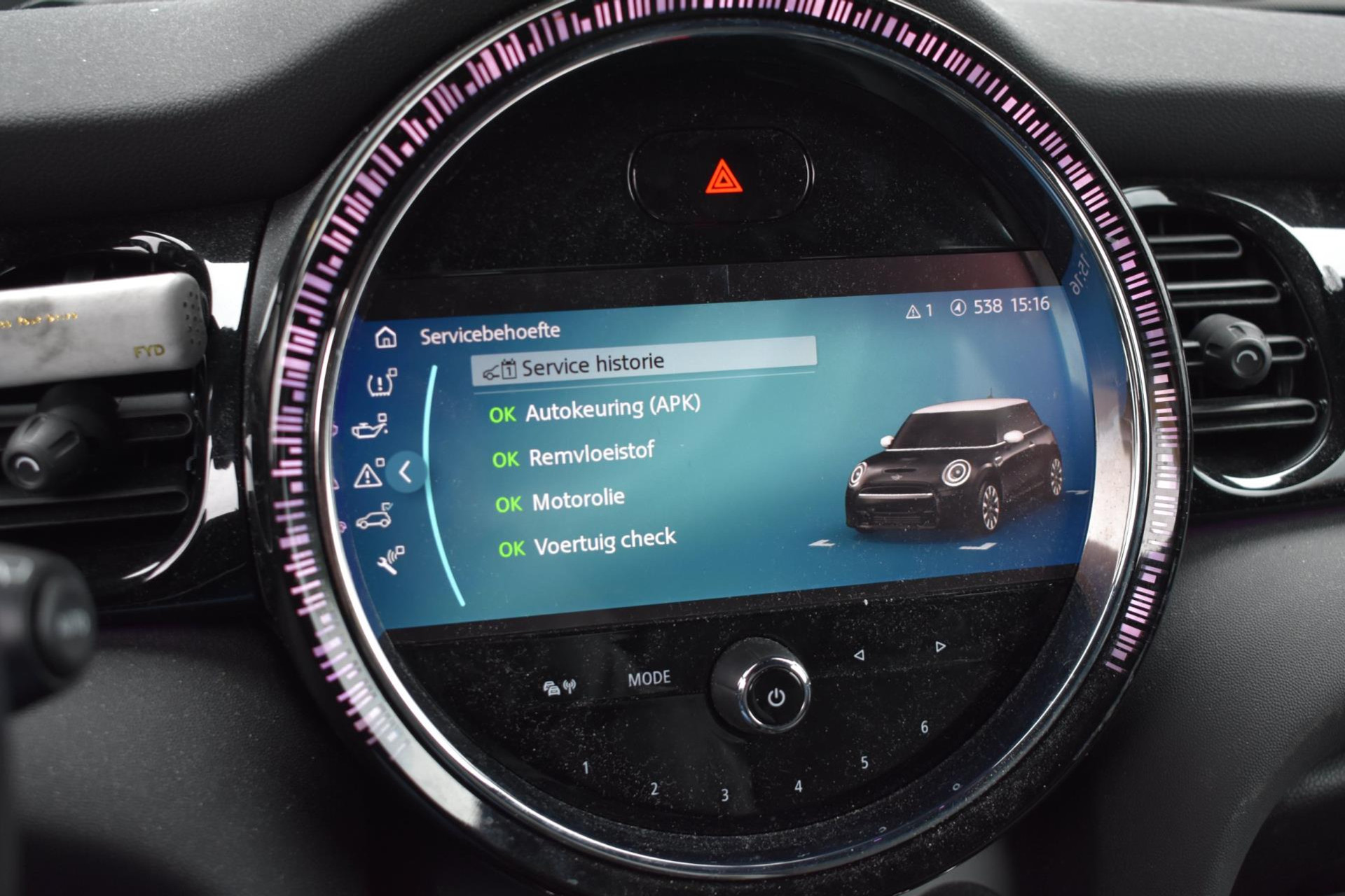 Deze zeer leuke en origineel Nederlands geleverde Mini Cooper is voorzien van tal van opties zoals onder andere sfeerverlichting ( ambiance light ), stuurverwarming, stoelverwarming, cruise controle, keyless entry en go en nog veel meer. Daarbij is de auto volledig dealer onderhouden en aantoonbaar middels de inzichtelijke onderhoudshistorie. De kilometerstand is voorzien van een een logische beoordeling ( NAP ), zodat u er zeker van bent een voertuig aan te schaffen met een kloppend verleden.