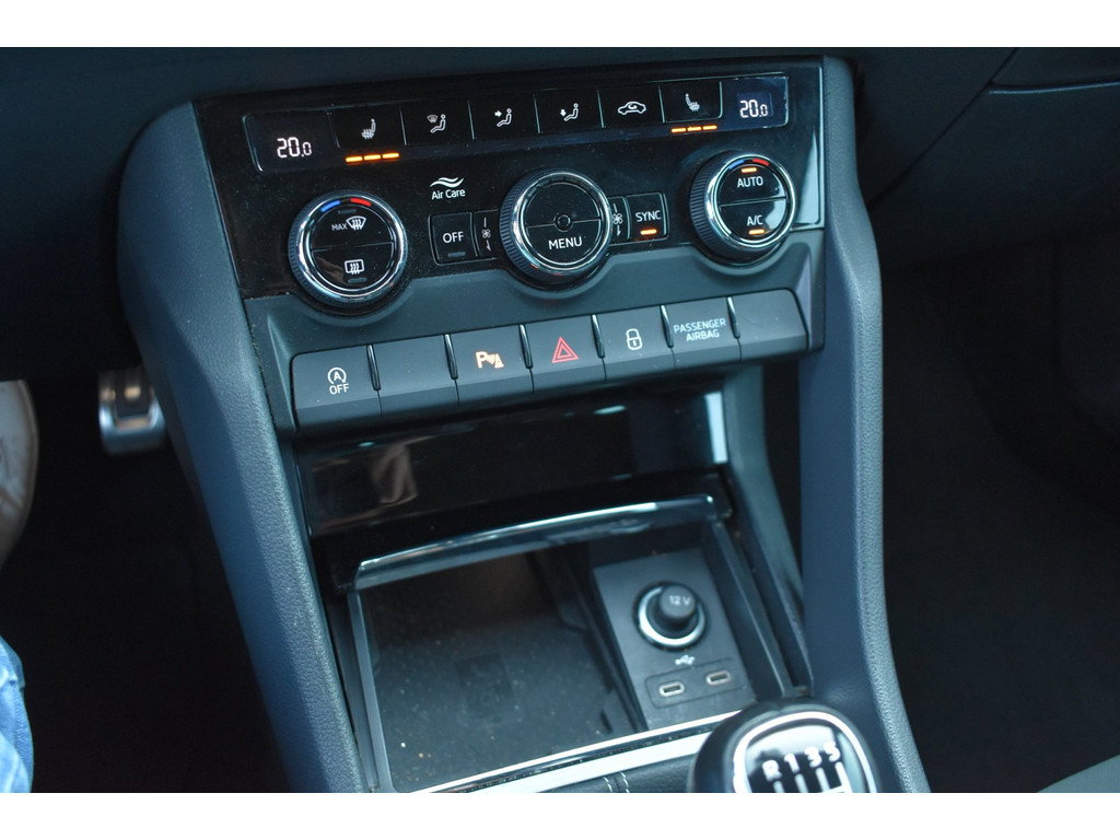 Deze Karoq Sportline is rijk uitgerust met populaire opties zoals een achteruitrijcamera, virtual cockpit (digitaal dashboard), stoelverwarming, Apple CarPlay en Android Auto. Ideaal voor comfortabel en modern rijden, zowel zakelijk als privé.